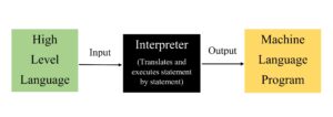 An interpreter is a translator which translates a program into machine language one line at a time and executes line of the program after it is translated The machine readable form of program is not stored on any storage and therefore, the program must be interpreted each time before it is executed. Therefore, in case of an interpreter, the translation and execution processes alternate for each statement encountered in high level language program. This differs from a compiler and merely translates the entire source program into an object program and is not involved in its execution. After compilation of a source program, the resulting object program is saved permanently for future use, and is used every time the program is to be executed. Hence, repeated compilation (translation of the source code) is not necessary for repeated execution of a program. However, in case of an interpreter, since no object program is saved for future use, repeated interpretation (translation plus execution) of a program is necessary for its repeated execution.